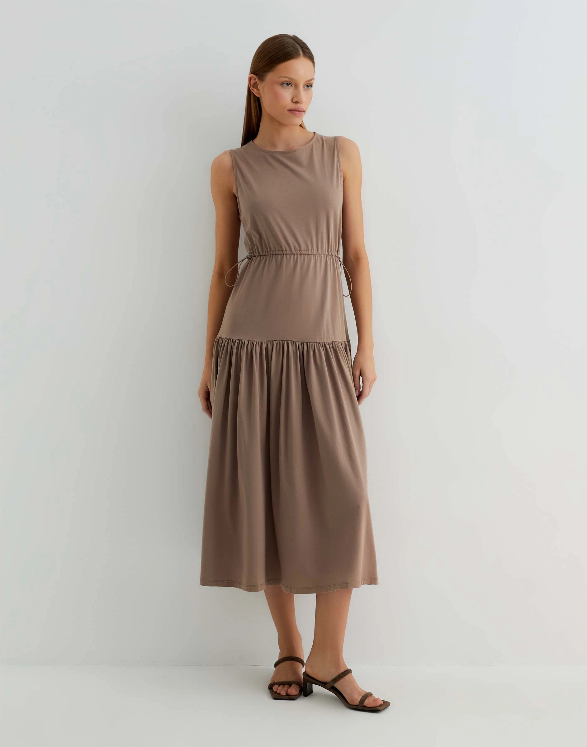 Светло-бежевое платье макси с кулиской Gdr030087-1