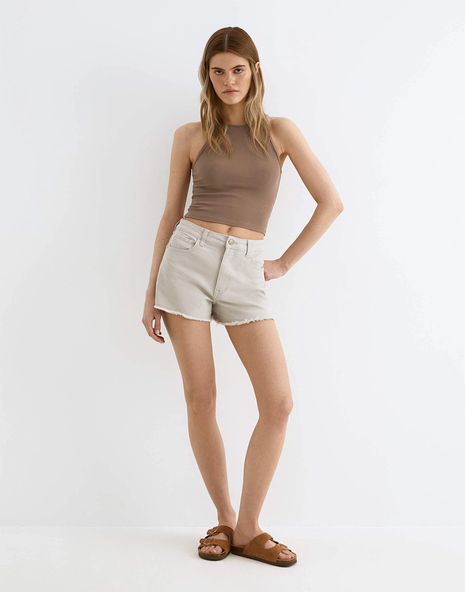 Светло-серые шорты с рваным дизайном Gsh012463-1