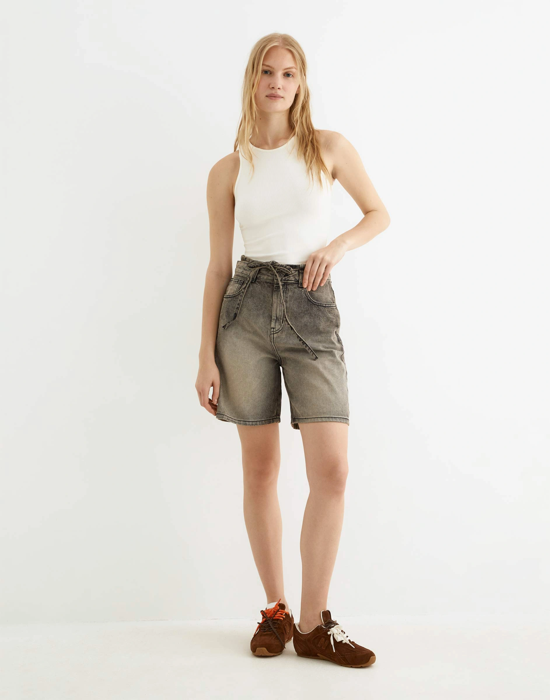 Серые джинсовые шорты со шнурком на талии Gsh013015-1