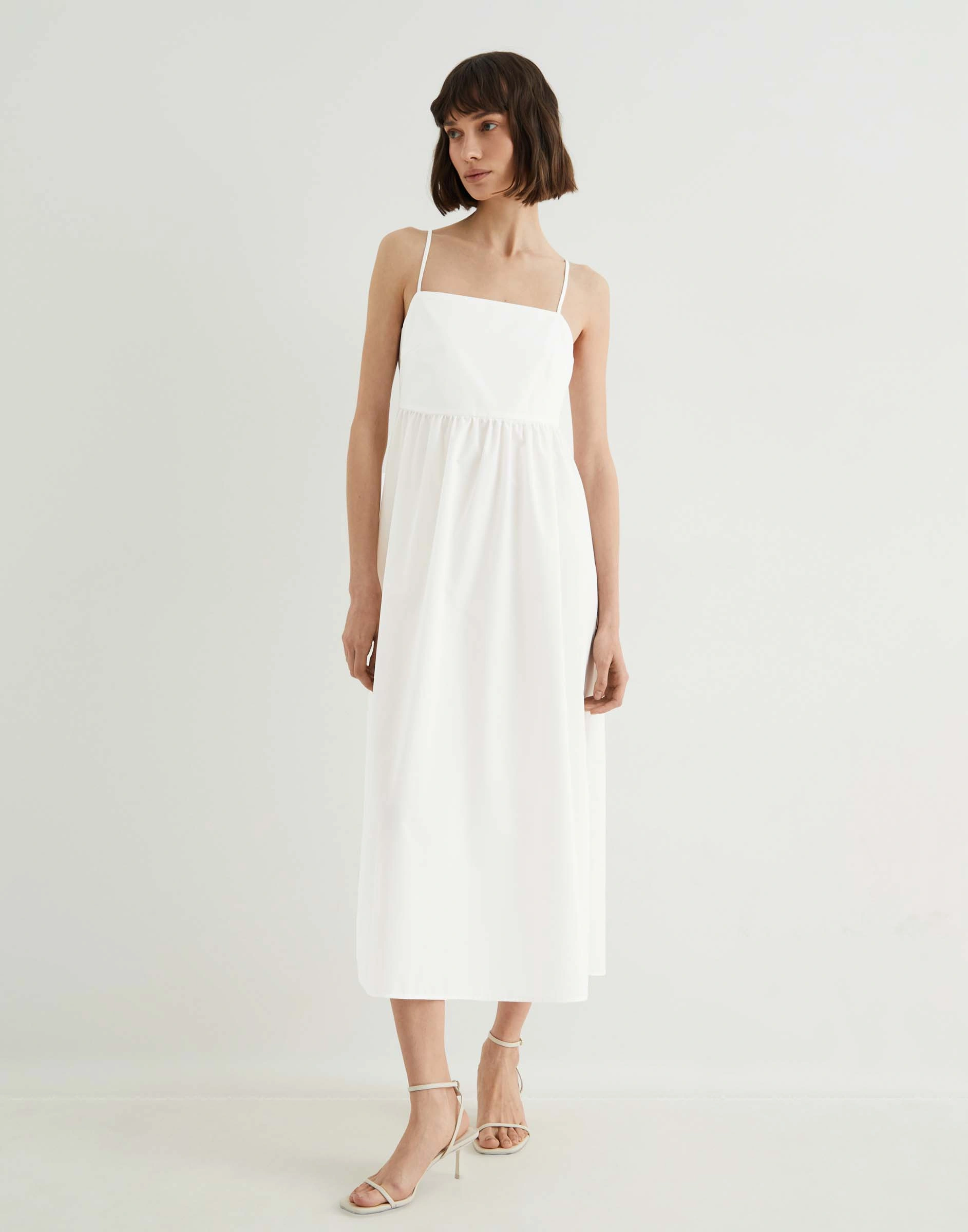 Молочное платье миди с вытачками и завязками на спине Gdr030257-1