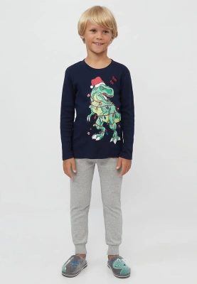 Хлопковая пижама с новогодним принтом для мальчика 118268