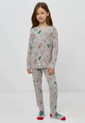 Хлопковая пижама с новогодним принтом для девочки 118292