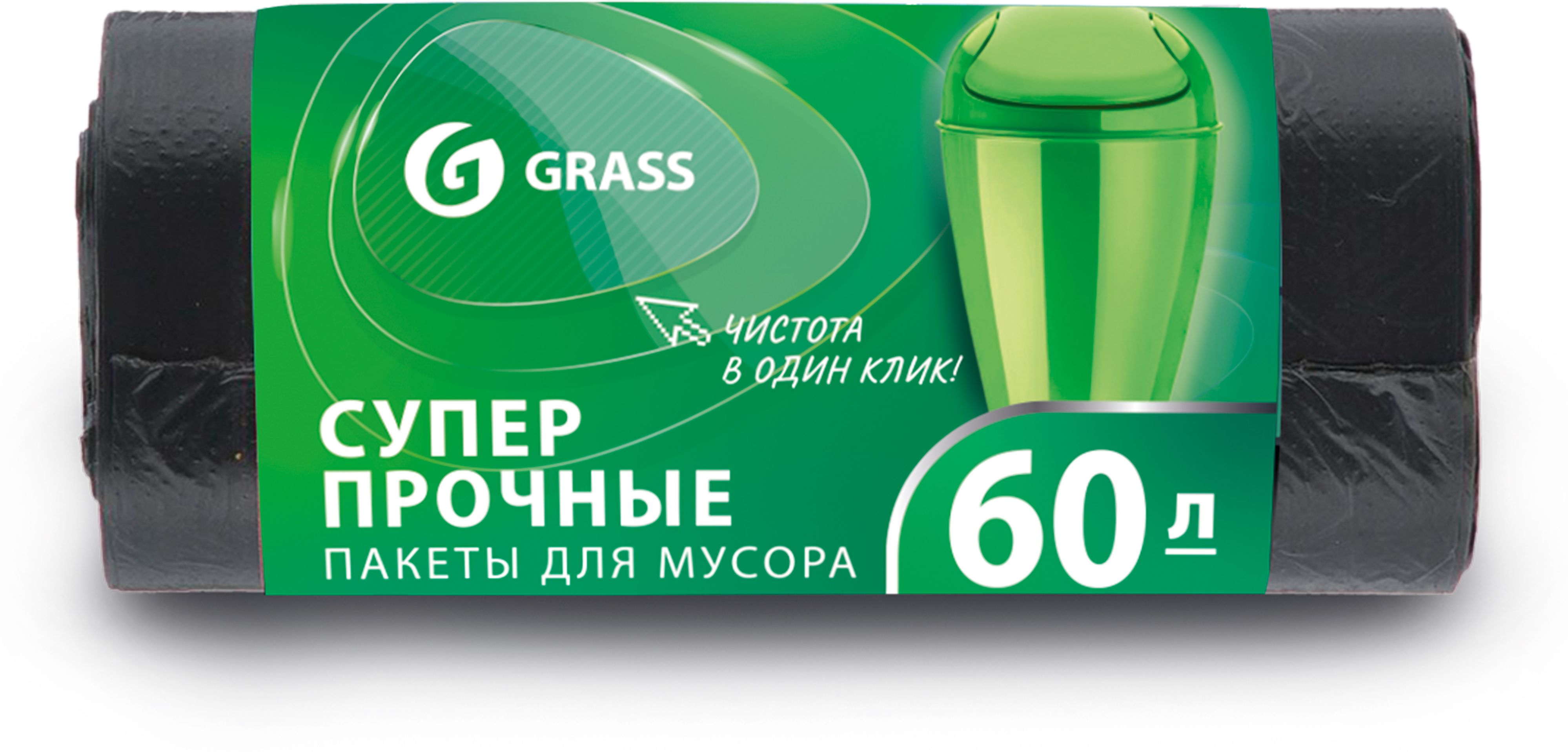Мешок для мусора Пнд в рулоне 60 л 65x55 8 мкр. Grass черный 30 шт