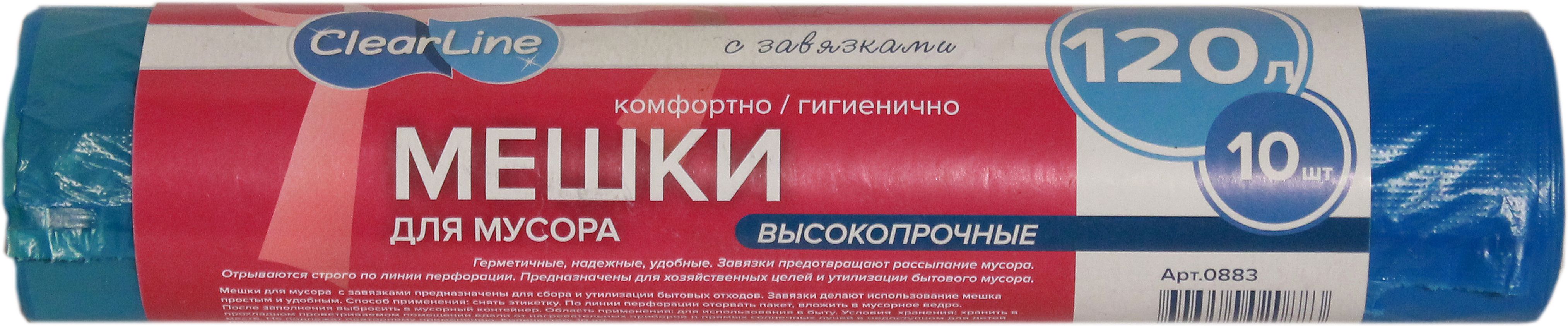 Мусорные мешки 120л/10шт с завязками высокопрочные синие