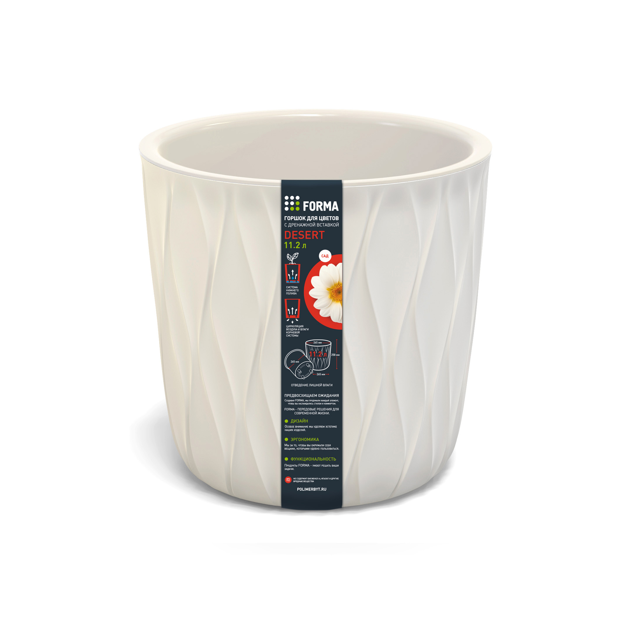 Горшок для цветов с дренажной вставкой Desert пластик 11.2 л d265 h258 мм молочный