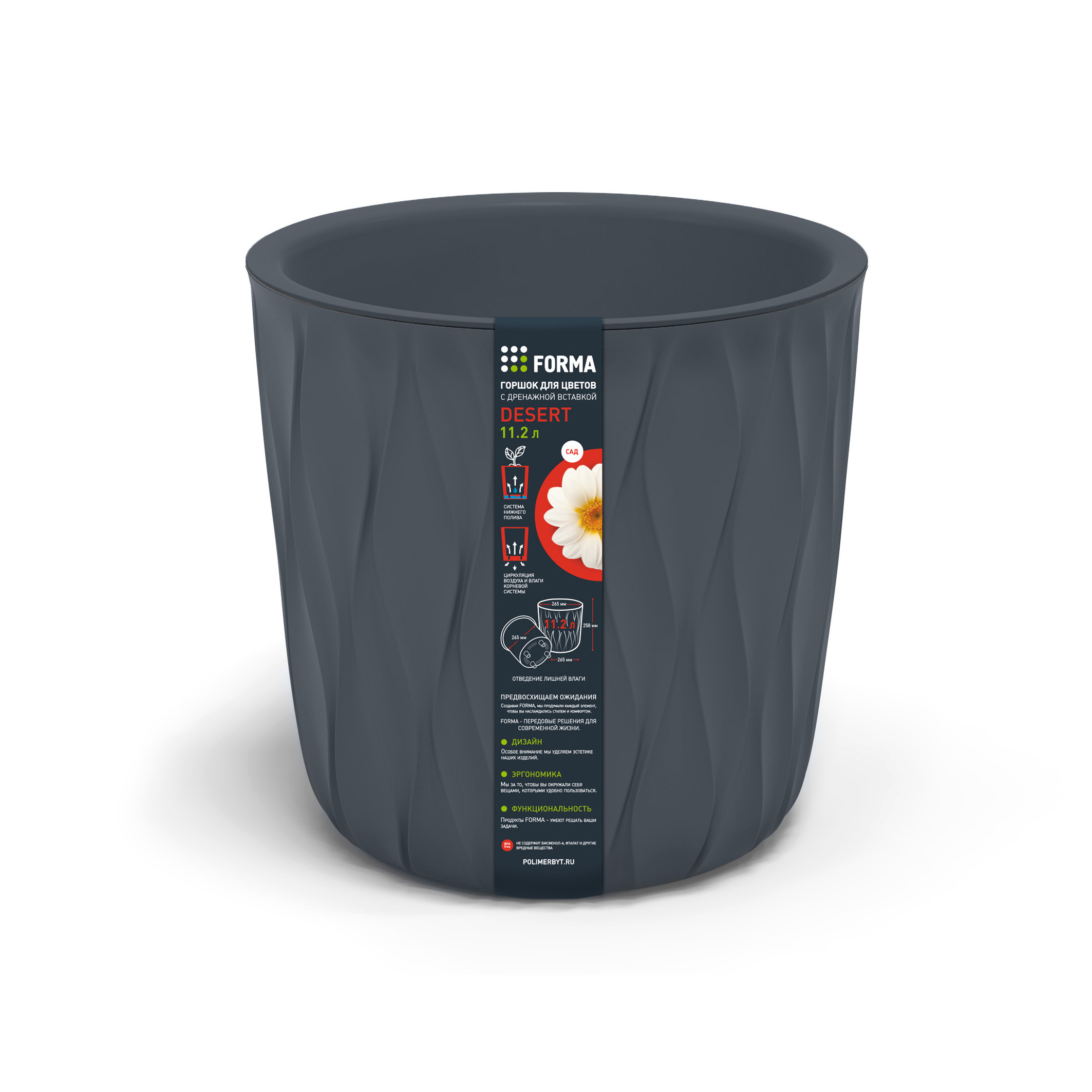 Горшок для цветов с дренажной вставкой пластик Desert 11.2 л d265 h258 мм серый
