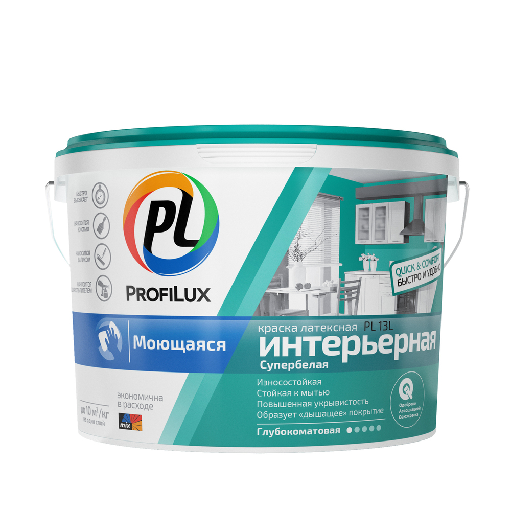 Краска Profilux Pl-13l интерьерная моющаяся, супербелая, база 1, 1.14 кг