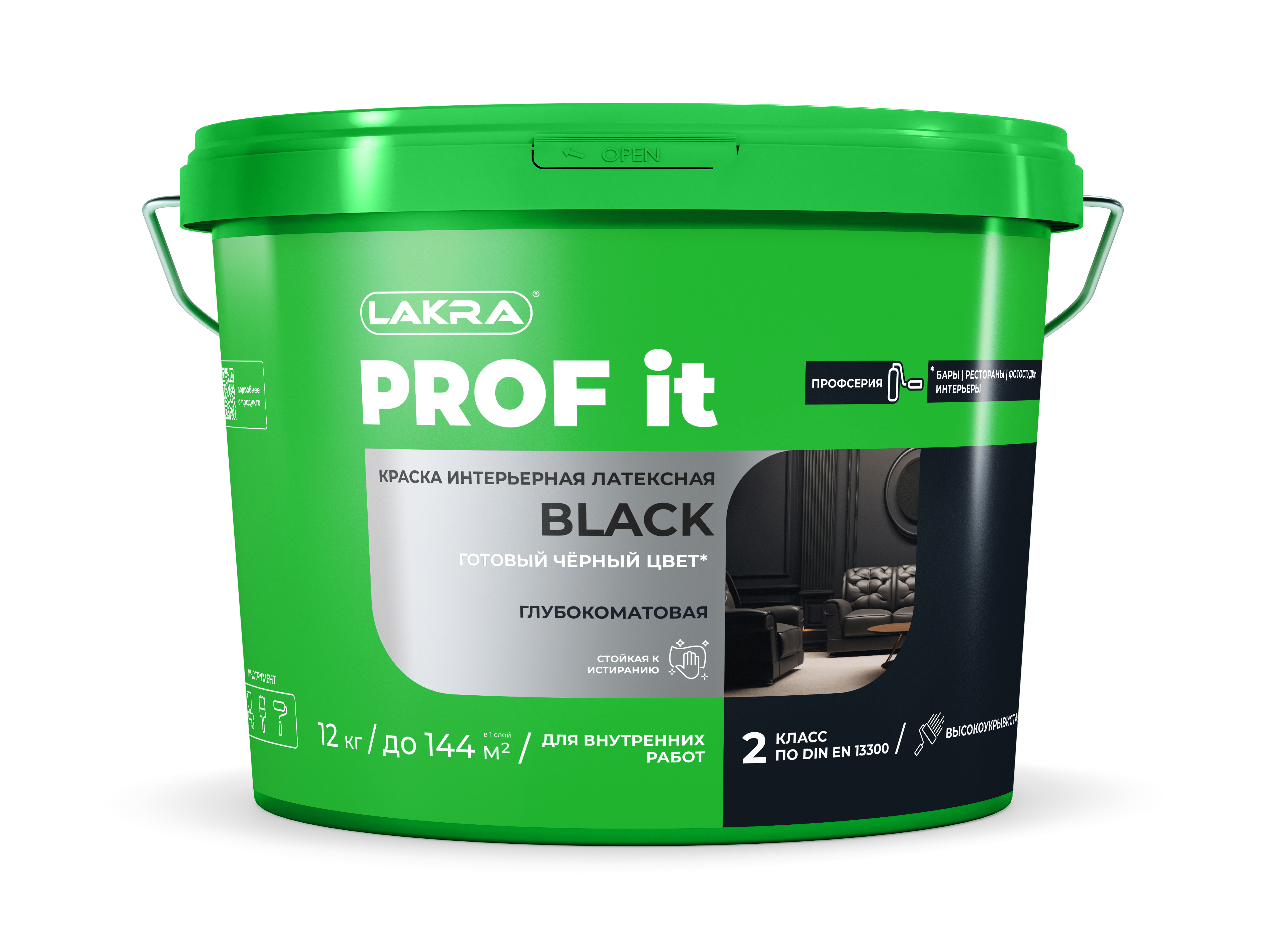 Краска интерьерная латексная Лакра Prof It Black чёрная 12 кг