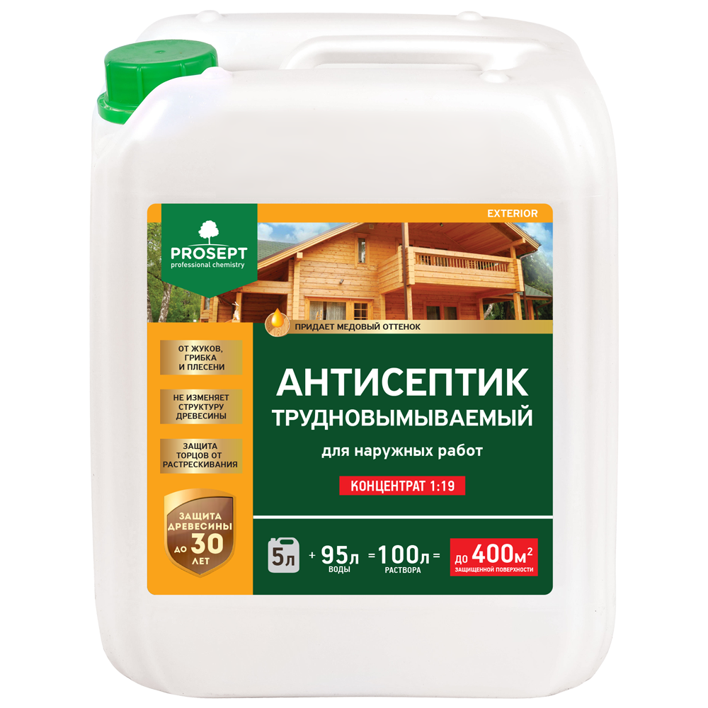 Антисептик prosept exterior трудновымыв. для наружн. работ для консерв. древ. 5л