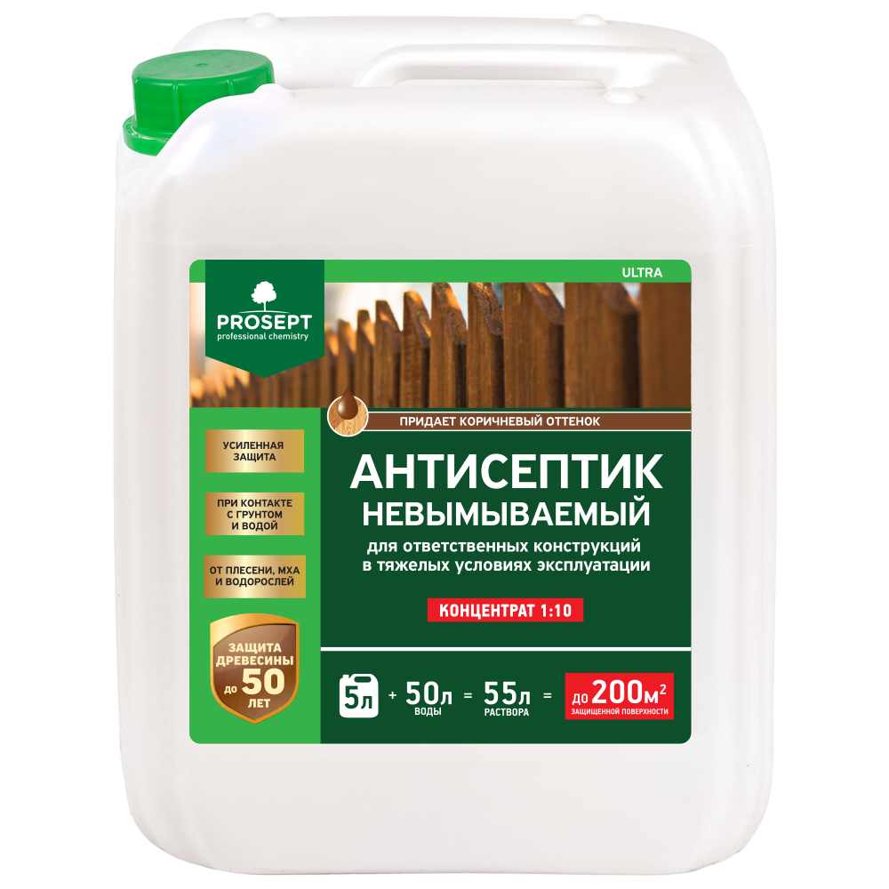 Антисептик prosept ultra концентрат невымываемый коричневый 5л