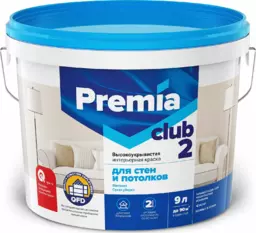 Краска интерьерная для стен и потолков Premia Club 2 белая база А ведро 9 л
