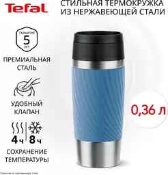 Термокружка Tefal Classic Easy Twist, 360 мл, голубая (N2024510)