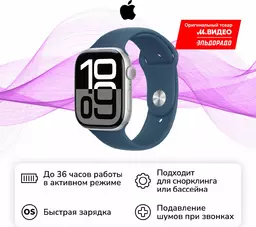 Смарт-часы Apple Watch S10 42mm Silver Aluminum Case with Silver Denim Sport Band, размер S/m (Mwwa3)