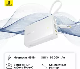 Внешний аккумулятор Baseus Picogo Digital Display, 10000 мач Moon White (P10076803213-00)