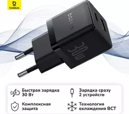 Сетевое зарядное устройство Baseus Palm Fast Charger C+u 30W Eu Cluster Black (P1011160a113-00)