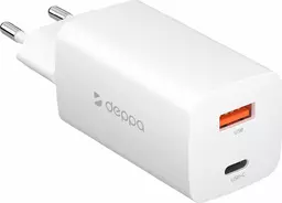 Сетевое зарядное устройство Deppa Usb-a + Usb-c, Pd 3.0, Qc 3.0, 65W, Gan, белое (11434)