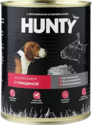 Корм консервированный для собак Hunty сочные кусочки в желе с говядиной, 850г