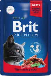Корм консервированный для взрослых кошек Brit Premium Говядина и горошек в соусе, 85г