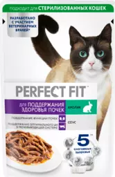 Корм консервированный для взрослых кошек Perfect Fit с кроликом в соусе, для здоровья почек, 75г