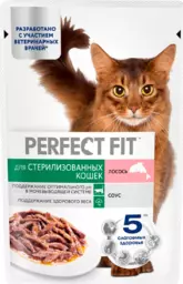 Корм консервированный для взрослых кошек Perfect Fit с лососем в соусе, для стерилизованных, 75г