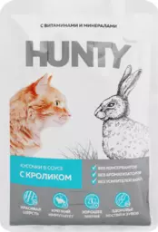 Корм консервированный для кошек Hunty сочные кусочки в соусе с кроликом, 85г