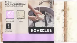 Губки для посуды Homeclub крупнопористые, 9.5х6.5х3.5см, 5шт
