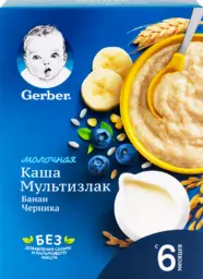 Каша мультизлаковая Gerber молочная с черникой и бананом, с 6 месяцев, 180г