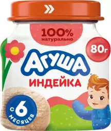 Пюре мясное детское Агуша Индейка, с 6 месяцев, 80г