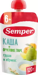 Пюре фруктово-злаковое Semper Грушево-абрикосовое, с кашей, с 6 месяцев, 120г