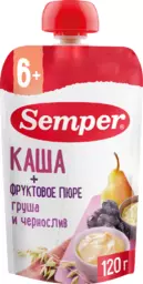 Пюре фруктово-злаковое Semper Грушево-черносливовое, с кашей, с 6 месяцев, 120г