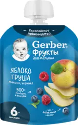 Пюре фруктово-ягодное Gerber Яблоко, груша, малина и черника, с 6 месяцев, 90г