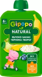 Пюре фруктово-ягодное Gipopo Яблоко, банан, черника и творог, с 6 месяцев, 90г