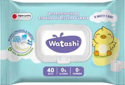 Бумага туалетная влажная детская Watashi смываемая, 0+, 40шт