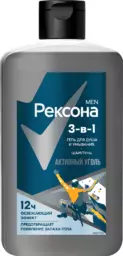 Гель для душа, умывания и шампунь мужской Рексона Men Активный уголь 3в1, 490мл