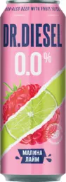 Напиток пивной безалкогольный Doctor Diesel Малина и лайм 0.0 пастеризованный не более 0.3%, 0.43л