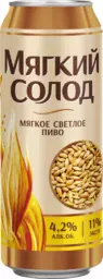 Пиво светлое Мягкий Солод Мягкое фильтрованное пастеризованный 4.2%, 0.45л