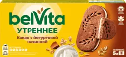 Печенье Belvita Утреннее Какао с йогуртовой начинкой, витаминизированное, 253г