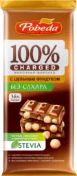 Шоколад молочный Победа Вкуса Charged с цельным фундуком, без сахара, 90г