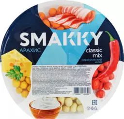 Арахис Smakky Classic mix снековая тарелка, со вкусом сыра, сметаны, чили, бекона, 200г