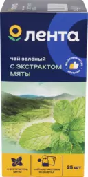 Чай зеленый Лента с экстрактом мяты, 25пак