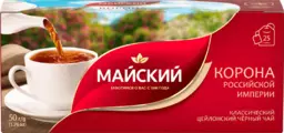 Чай черный Майский Корона Российской Империи Цейлонский байховый листовой, 25пак