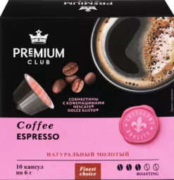 Кофе в капсулах Premium Club Espresso натуральный жареный молотый, 10шт