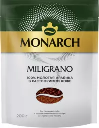 Кофе растворимый с добавлением молотого Monarch Miligrano натуральный сублимированный, 200г