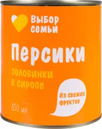 Персики Выбор Семьи половинки в сиропе, 850мл