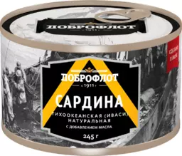 Сардина Тихоокеанская Доброфлот (иваси) натуральная, с добавлением масла, 245г