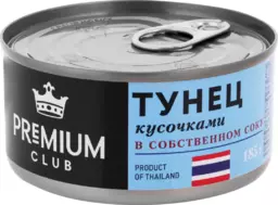 Тунец Premium Club в собственном соку, кусочки, 185г