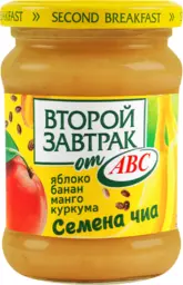 Десерт фруктово-злаковый Второй Завтрак От Abc Яблоко, банан и манго, с семенами чиа и куркумой, 250г