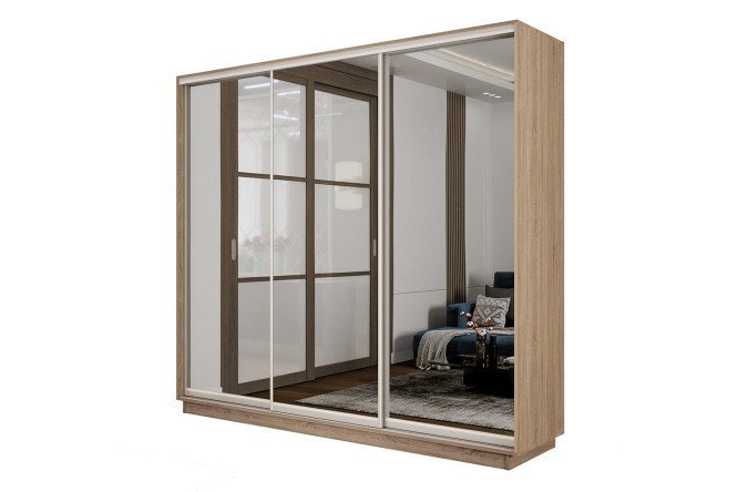 Шкаф-купе 3-дверный Slide-2 180х240х60 см, сонома/серебро, с тремя зеркалами 10426595