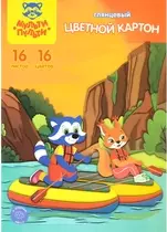 Картон цветной мелованный А4 Мульти-пульти Приключения Енота односторонний 16 л 16 цветов 1 уп