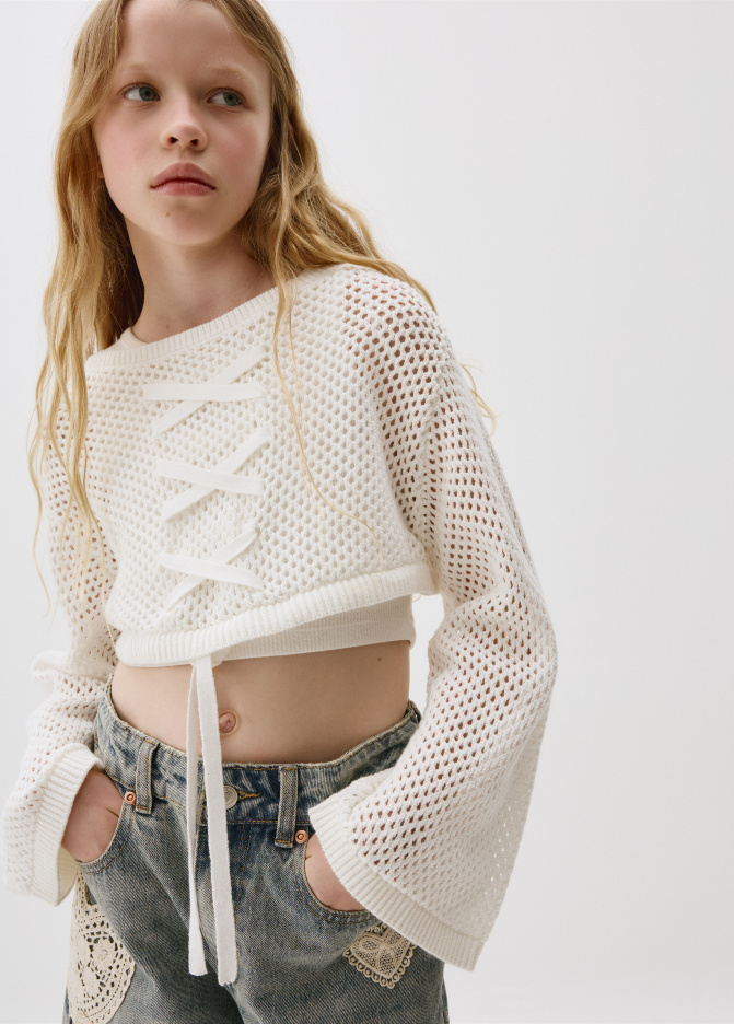 Укороченный джемпер с декоративной шнуровкой для девочек Sl5805050603_2